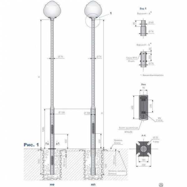 Способ установки опор НП — прямостоечный, закрепляется при помощи бетона.